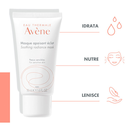 Avene Les Essentiels Maschera Lenitiva Idratante 50ml è una maschera lenitiva che dona comfort ed ha un effetto energizzante per la pelle stanca (lineamenti segnati e carnagione spenta) e per la pelle sensibile disidratata e con sensazioni di disagio. Formulata con una miscela di estratto naturale di frutti rossi, un "booster" per le cellule della pelle, una forma stabile di vitamina E antiossidante e un cocktail di principi attivi nutrienti e idratanti per contrastare i segni di affaticamento. Rivela la bellezza naturale della pelle, idrata e rafforza la barriera cutanea. L'Acqua Termale Avène, lenitiva e addolcente, completa questo trattamento protettivo, lasciando un velo di morbidezza sul viso. L’incarnato appare riposato e radioso.